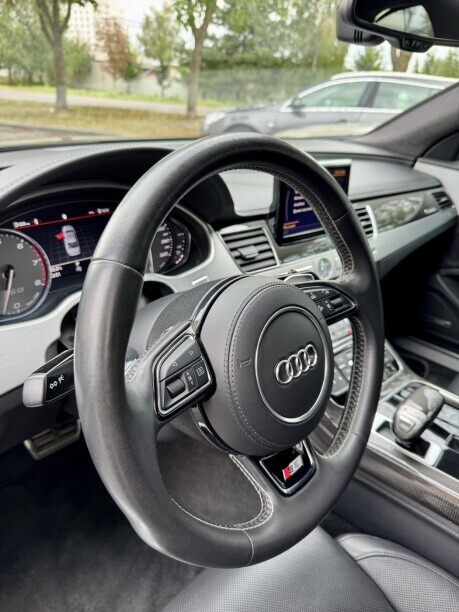 В продаже чистокровная S8! Шикарный темно коричневый цвет в сочетании с классическим черным салоном. Установлены оригинальные диски R21 с новой летней резиной! В России никогда не была. В ДТП не участвовала, все стекла заводские! Богатая комплектация: -камеры 360 -камера ночного видения -активный круиз контроль -контроль мертвых зон -подогрев/вентиляция/массаж сидений -двойной стеклопакет -заводские шторки сзади -бесключевой доступ -активный задний дифференциал -акустика Bose -вставки из карбона -черный потолок в алькантаре Автохаусы ваши услуги не интересны! Машина на учете, продается с полным переоформлением в МРЭО ГАИ по ДКП! Друзья, у кого не хватает даже копейки-можете ничего не писать с предложениями встречной цены, вам такая машина не по карману :) Обмены на золото, изумруды драконов, бывшие дачи Гитлера так же не интересны, не дурите голову!