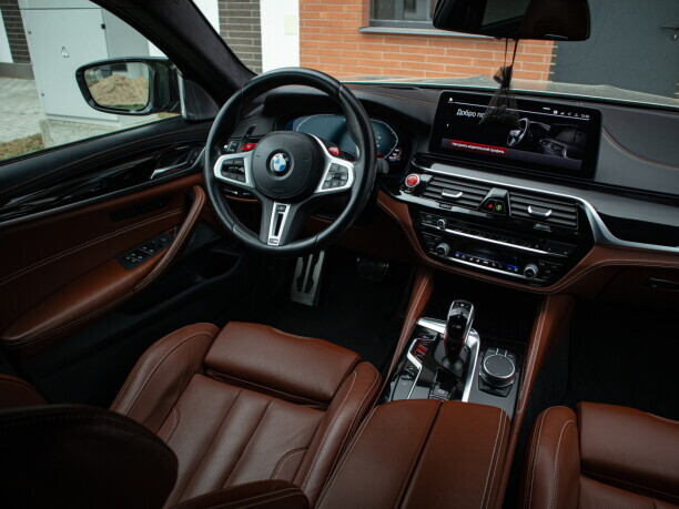 BMW M5 Competition. Максимальная комплектация!!! Богатый цвет кузова - Donington-grau metallic. Самый кайфовый цвет салона - Tartufo, потолок алькантара, карбон-керамическая тормозная система, комфортный доступ, доводчики дверей, проекция, массаж, вентиляция сидений, музыка Bowers Wilkins, карбоновая крыша, карбоновый задний сплиттер, шторы, выхлоп Competition и многое другое. Автомобиль в идеальном состоянии и полностью обслужен. Больше информации по телефону.