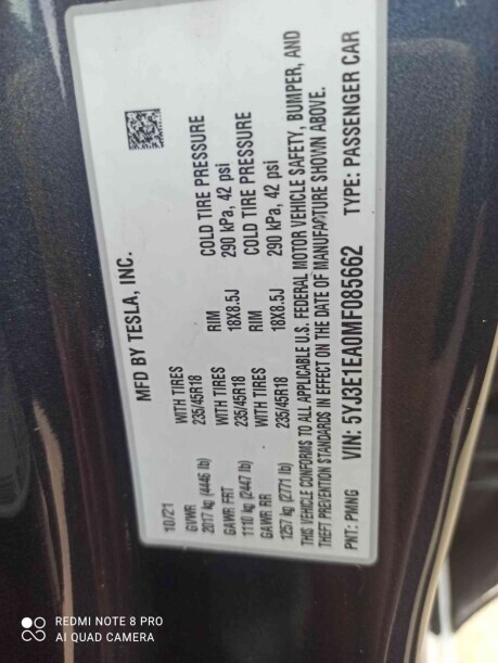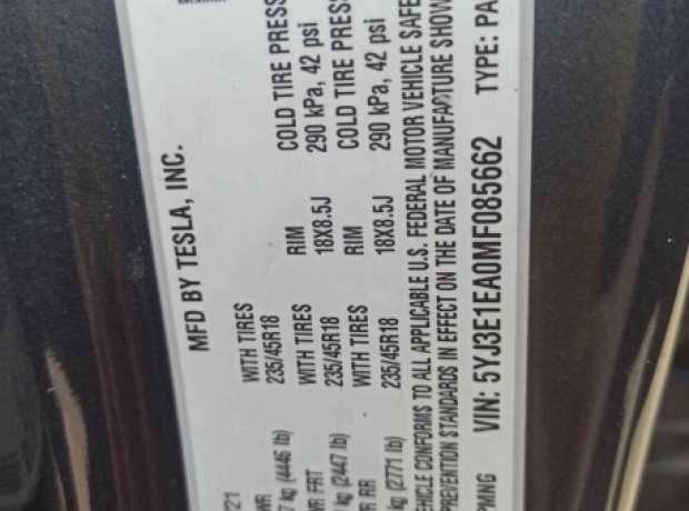 Tesla Model 3 I Рестайлинг, 2021, пробег 107500 км